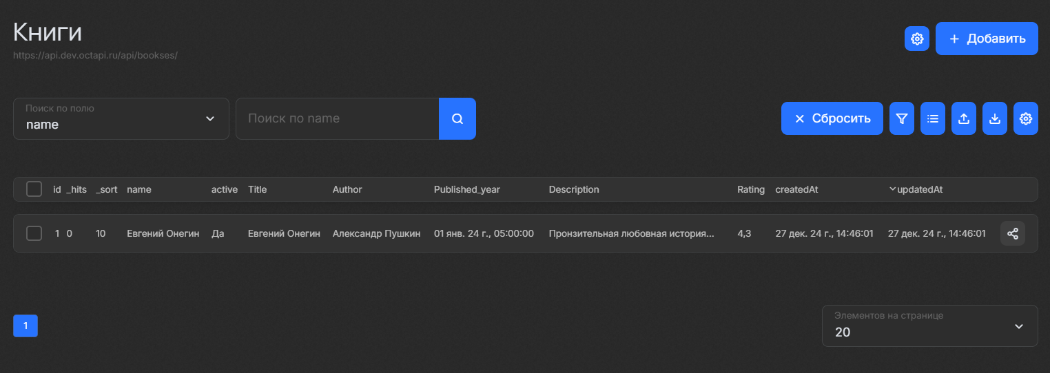 Раздел предоставляет информацию о элементах выбранной коллекции в виде таблицы. Здесь можно найти такие данные, как: