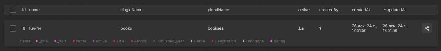Настройку уникальных идентификаторов коллекции — одиночное (singleName) и множественное (pluralName) названия на английском языке.