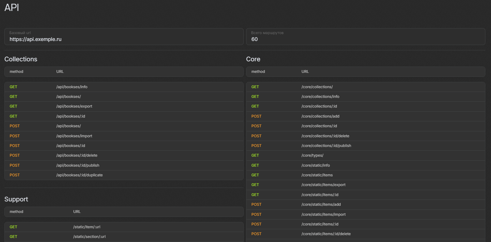 API-документация: предоставляет доступ к маршрутам для интеграции внешних систем.