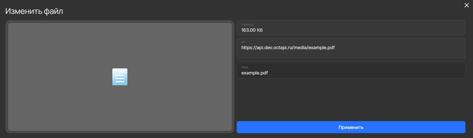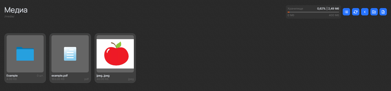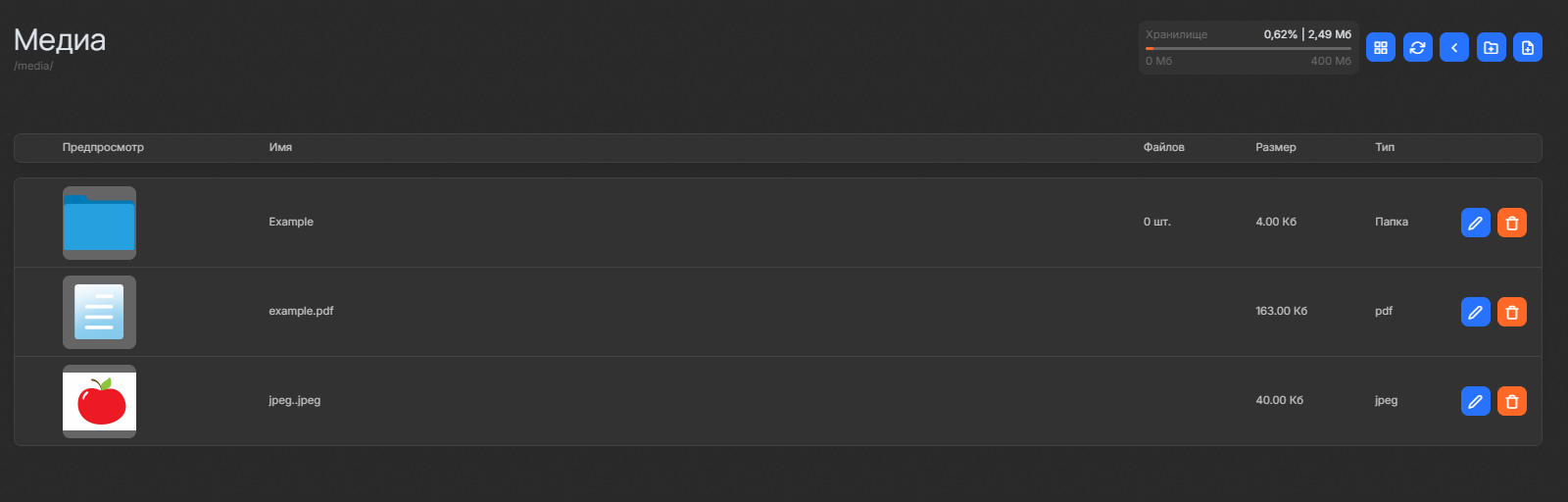- Загрузить файл — позволяет добавить новые файлы в систему.