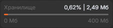 - Текущий объем хранения — отображает использованное и общее место, например, «2,49 Мб из 400 Мб».