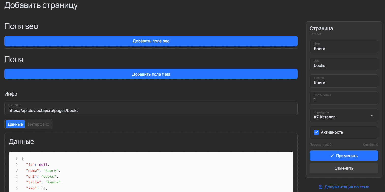 Добавление раздела страниц