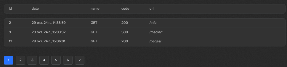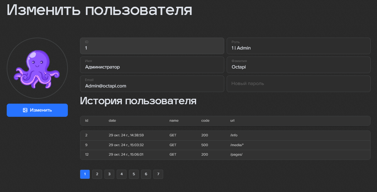 Под журналом активности пользователя расположена пагинация, которая позволяет просматривать историю действий по страницам. Это удобно для навигации и помогает быстро находить необходимые записи в случае большого объема данных.
