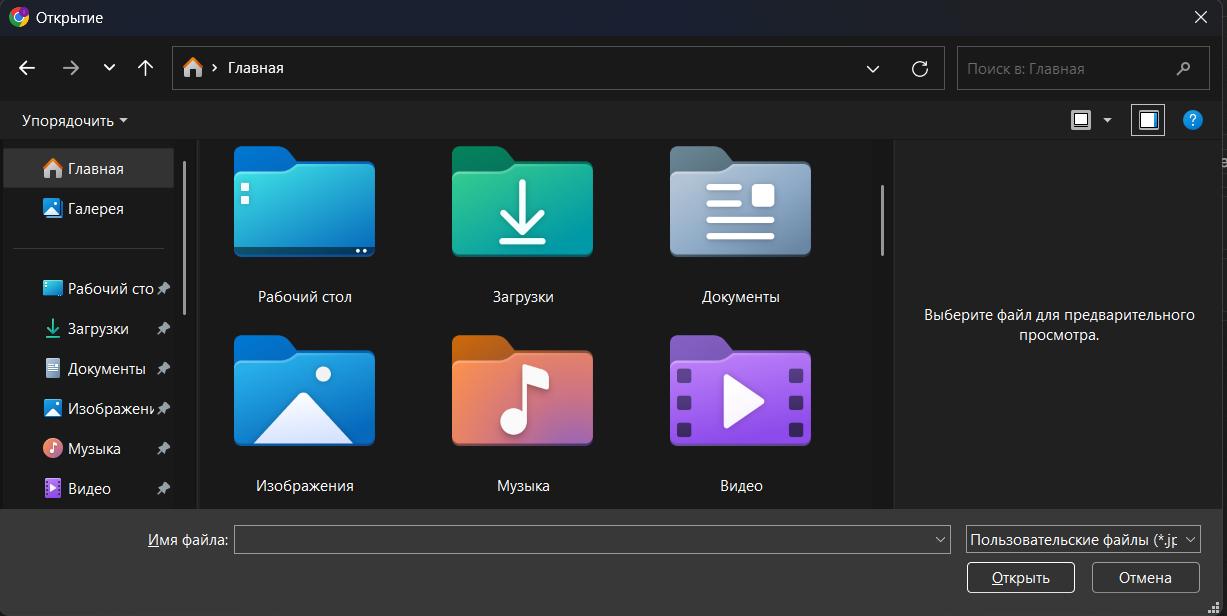 В нем можно выбрать изображения на локальном устройстве для загрузки нового фото профиля.