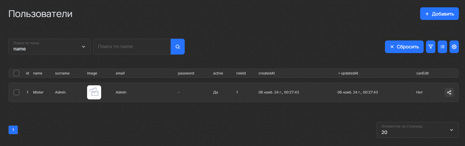 В разделе «Пользователи» вы можете просматривать, добавлять, редактировать и управлять информацией о пользователях платформы. Это основное место для администрирования учетных записей.