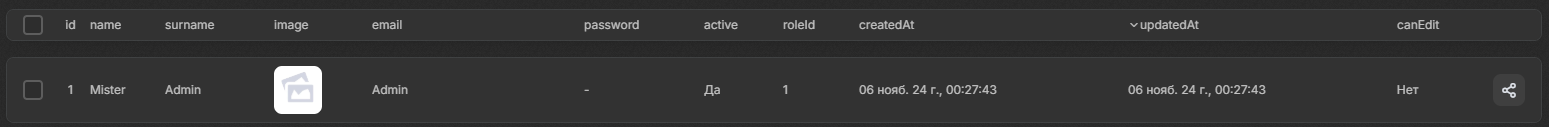 Таблица позволяет управлять всеми элементами, отображаемыми в разделе «Пользователи». Она предоставляет полный контроль над данными пользователей и их атрибутами.
